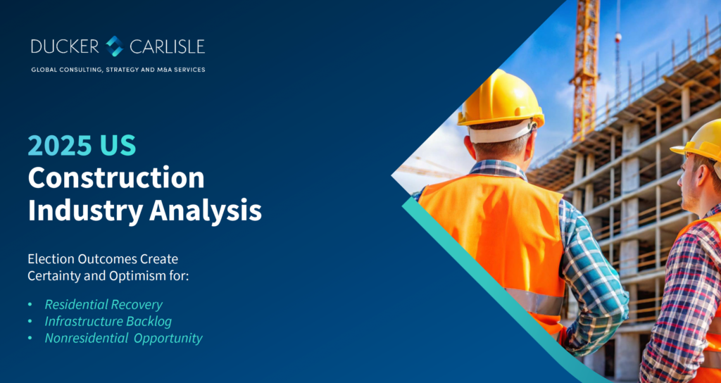 The Ducker Carlisle 2025 Construction Industry Outlook provides a comprehensive analysis of the U.S. construction sector, highlighting opportunities and challenges in a post-election landscape marked by renewed optimism. With anticipated growth across residential, nonresidential, and infrastructure segments, the sector is set to benefit from stabilizing mortgage rates, demographic shifts, and significant federal investments. Key initiatives such as the Infrastructure Investment and Jobs Act (IIJA) and Inflation Reduction Act (IRA) are expected to modernize critical infrastructure, drive clean energy projects, and enhance domestic manufacturing capabilities, positioning the industry for sustainable expansion.