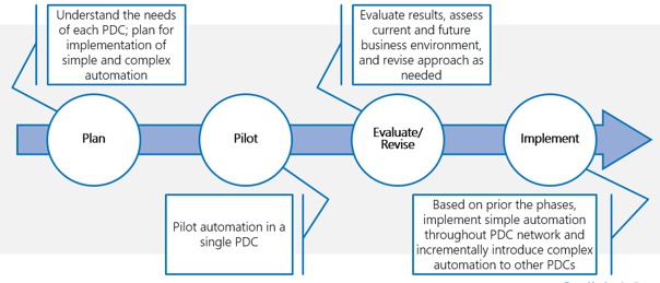 Once technologies have been selected, a four-step approach to implementation should be used: (1) plan, (2) pilot, (3) evaluate and revise, and (4) implement.