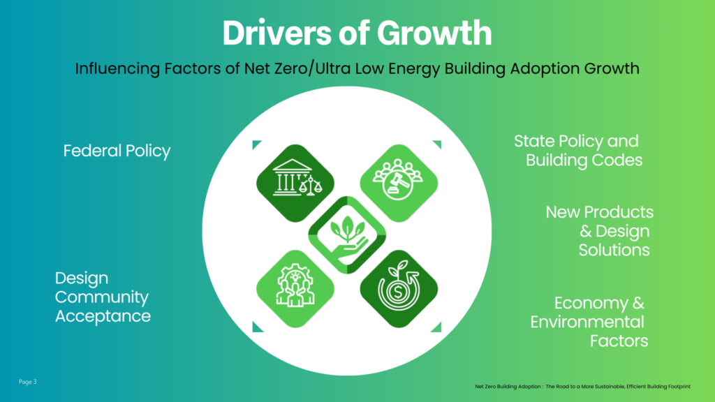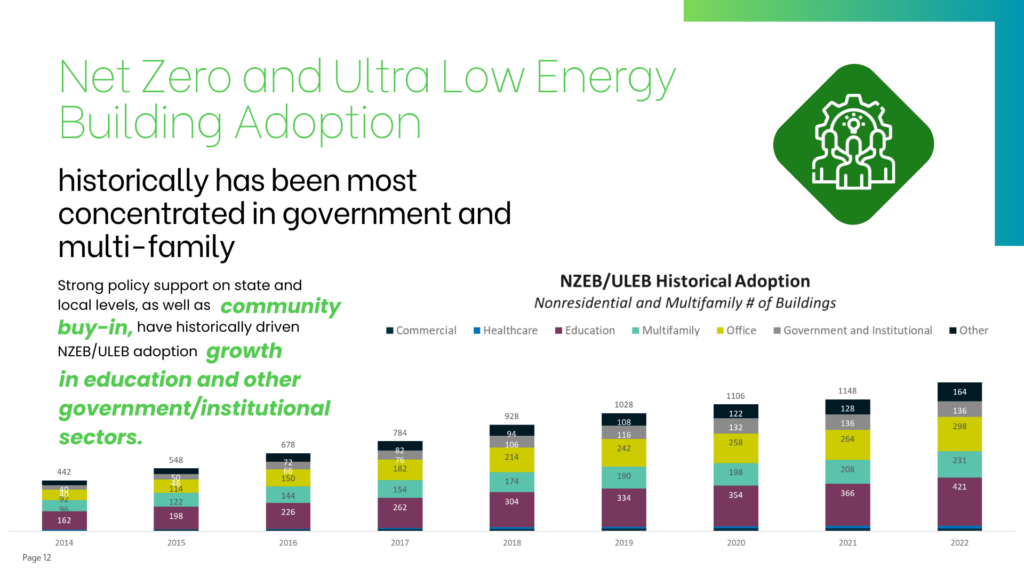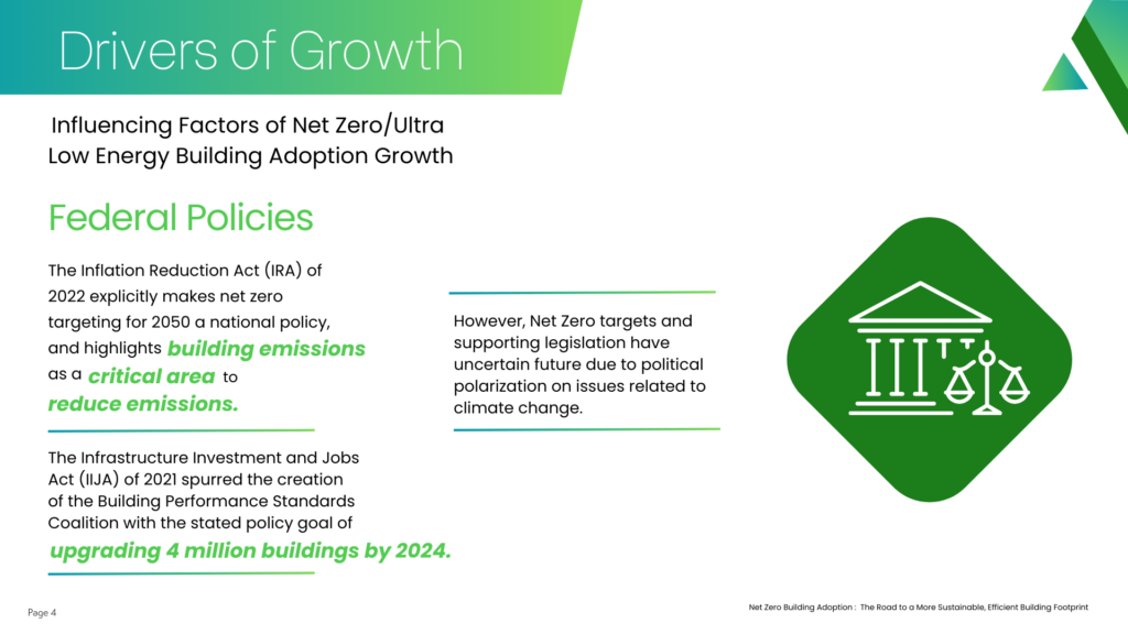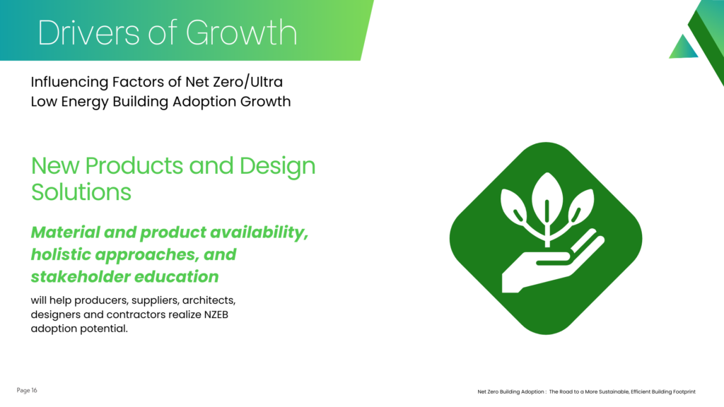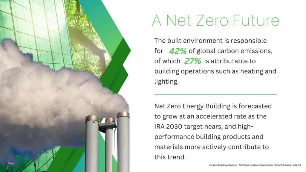 Net Zero Energy Building is forecasted to grow at an accelerated rate as the IRA 2030 target nears, and high-performance building products and materials more actively contribute to this trend.